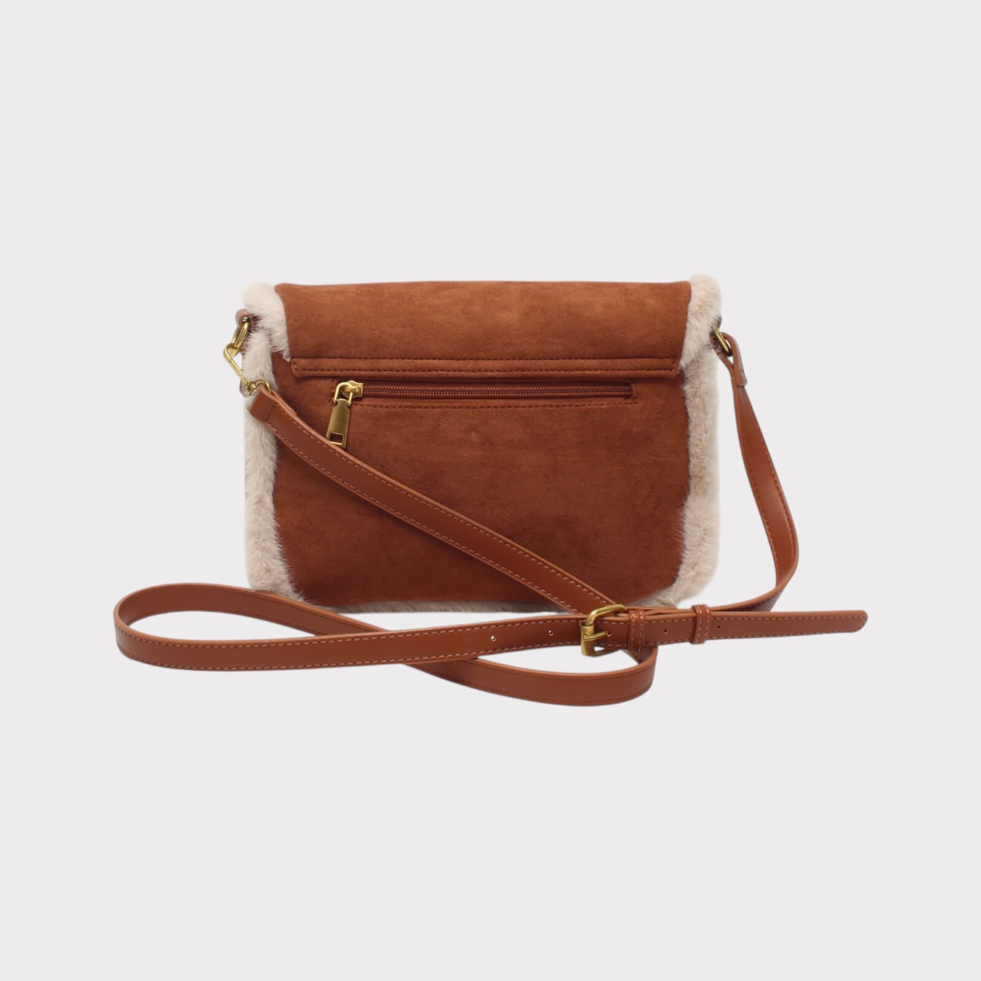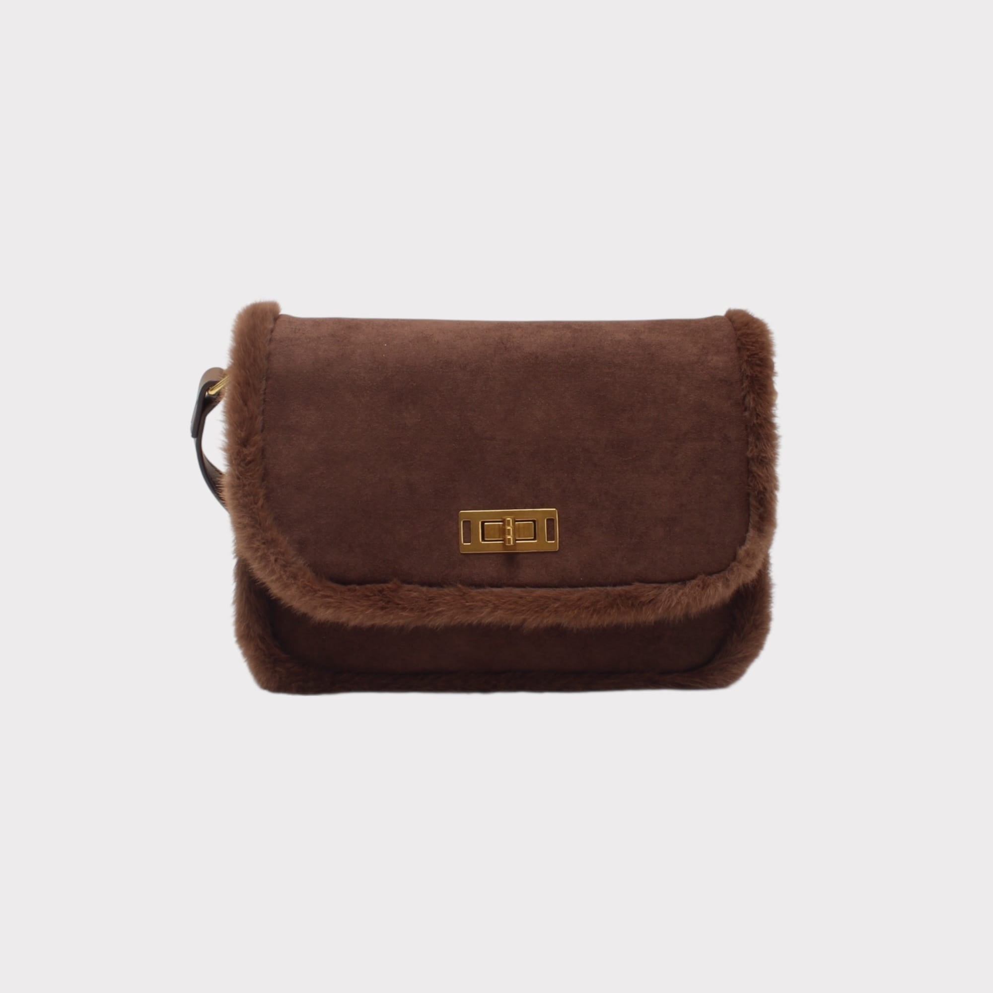 Sac bandoulière, avec fermoir doré, effet suede et fourrure
