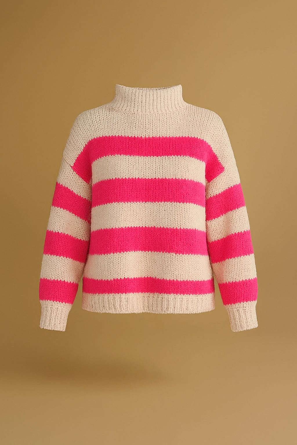 Apportez une touche de peps à votre look avec ce pull grande taille à rayures! Son col cheminée vous garde bien au chaud tout en restant tendance.