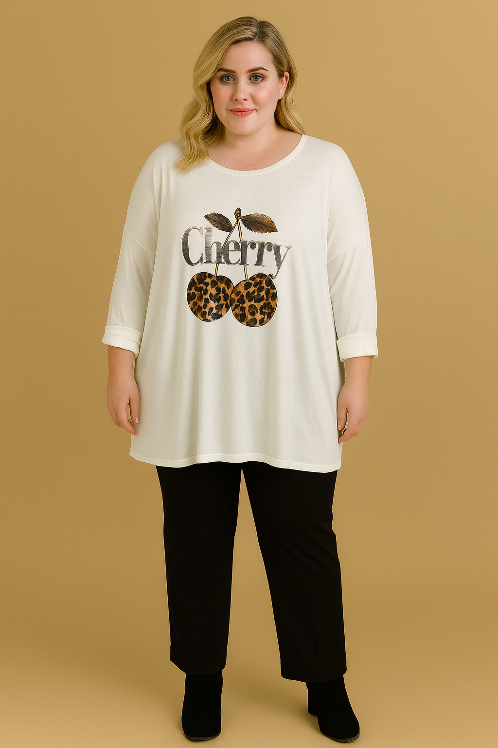 Détails : Taille unique du 48 au 56 Coupe oversize Manches longues retroussables Motif cerises léopard doré On adore : son style fun et féminin, idéal pour un look casual chic !