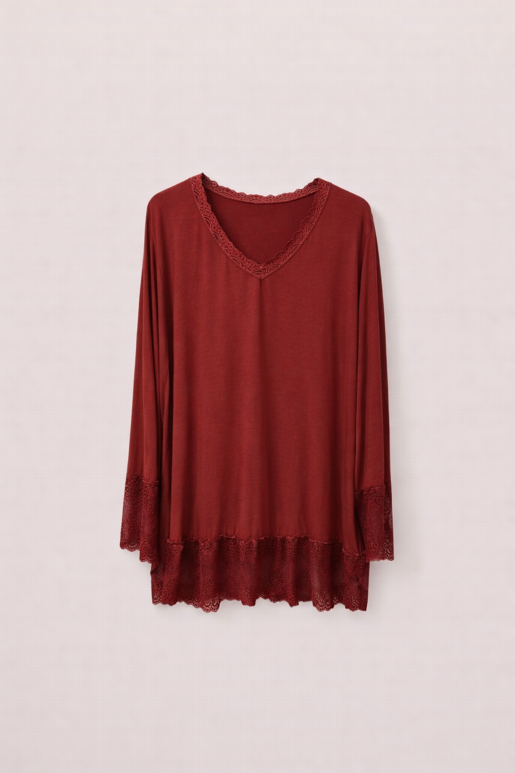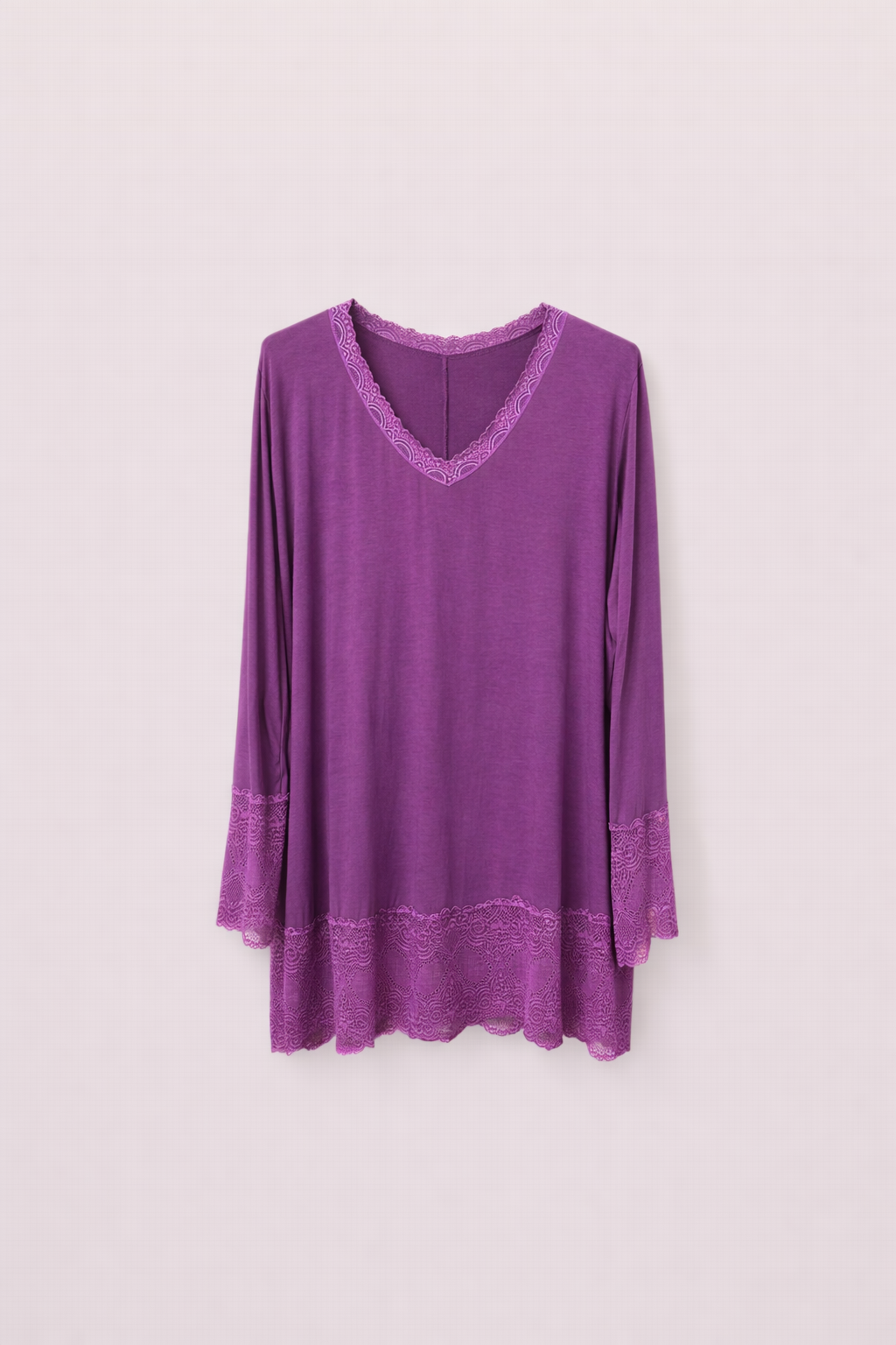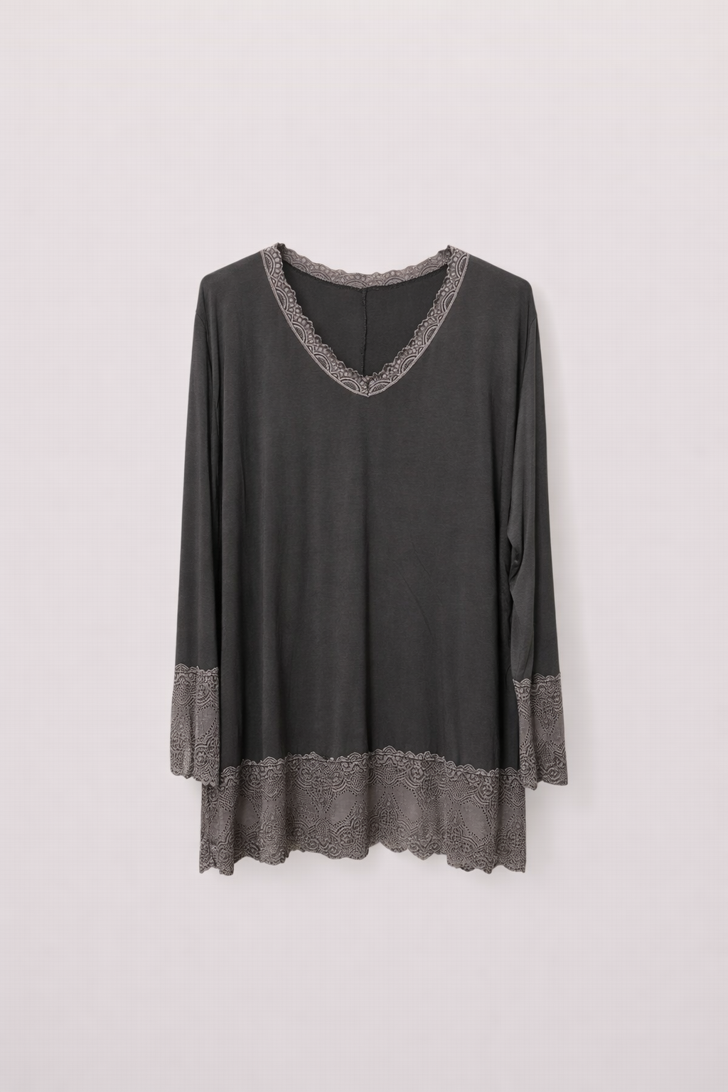 Ce top vous apportera élégance et confort au quotidien. Sa matière douce et légèrement extensible enveloppe délicatement votre silhouette sans serrer, tandis que la dentelle délicate sur les manches et le buste apporte une touche féminine raffinée.