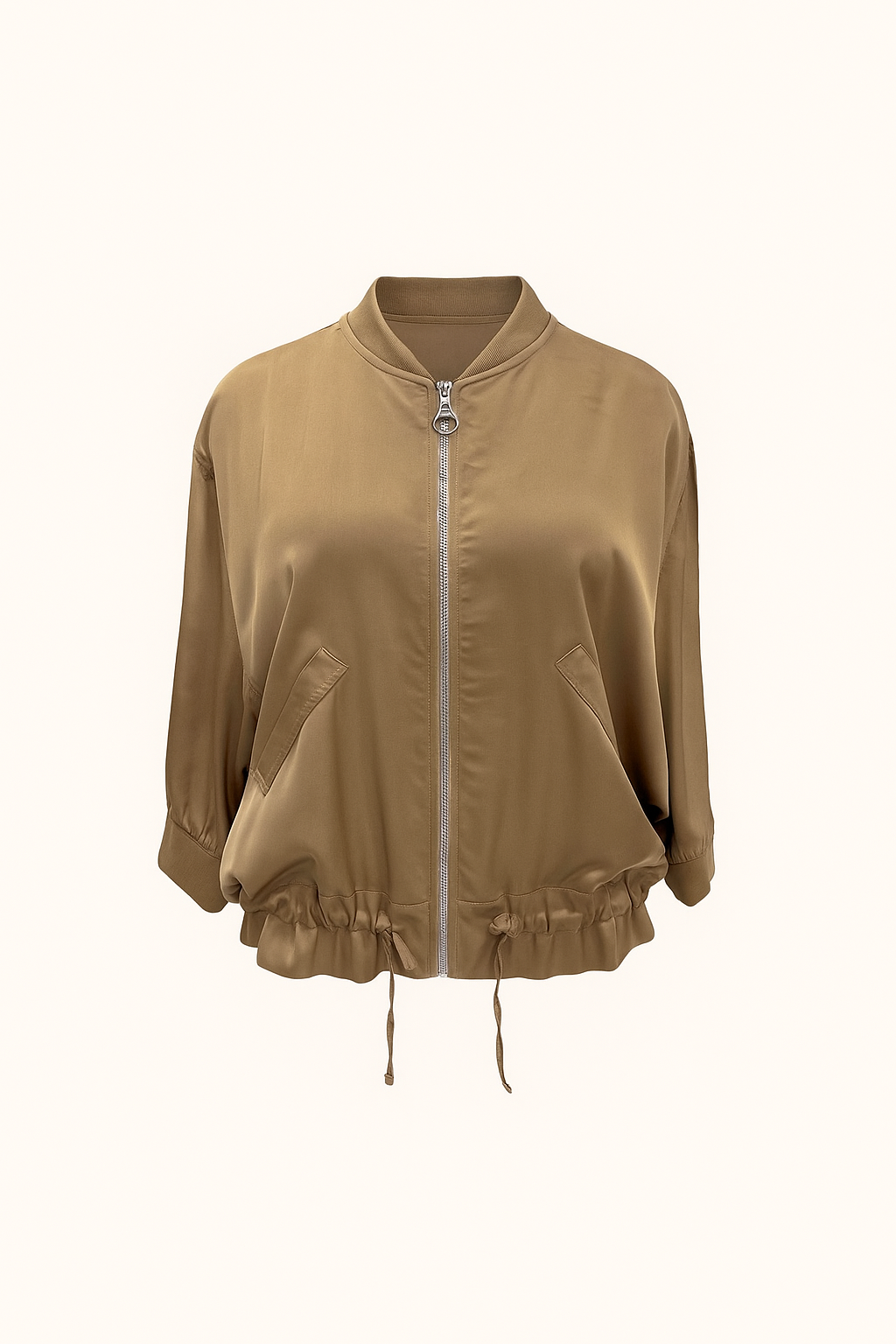 Craquez pour ce bombers grande taille, la pièce parfaite pour un look casual et moderne. Sa coupe légèrement ample et sa matière fluide assurent confort et style au quotidien. Fermeture zippée argentée et lien de resserrage pour ajuster la taille selon vos envies.