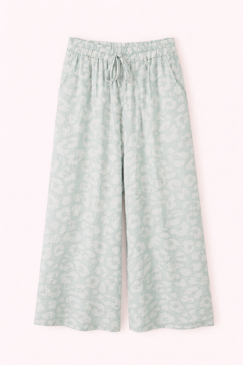 Le pantalon qui change tout ! Ce palazzo grande taille en tissu fluide imprimé léopard et est la pièce confort-chic par excellence — celle qu'on met le matin et qu'on ne veut plus enlever.