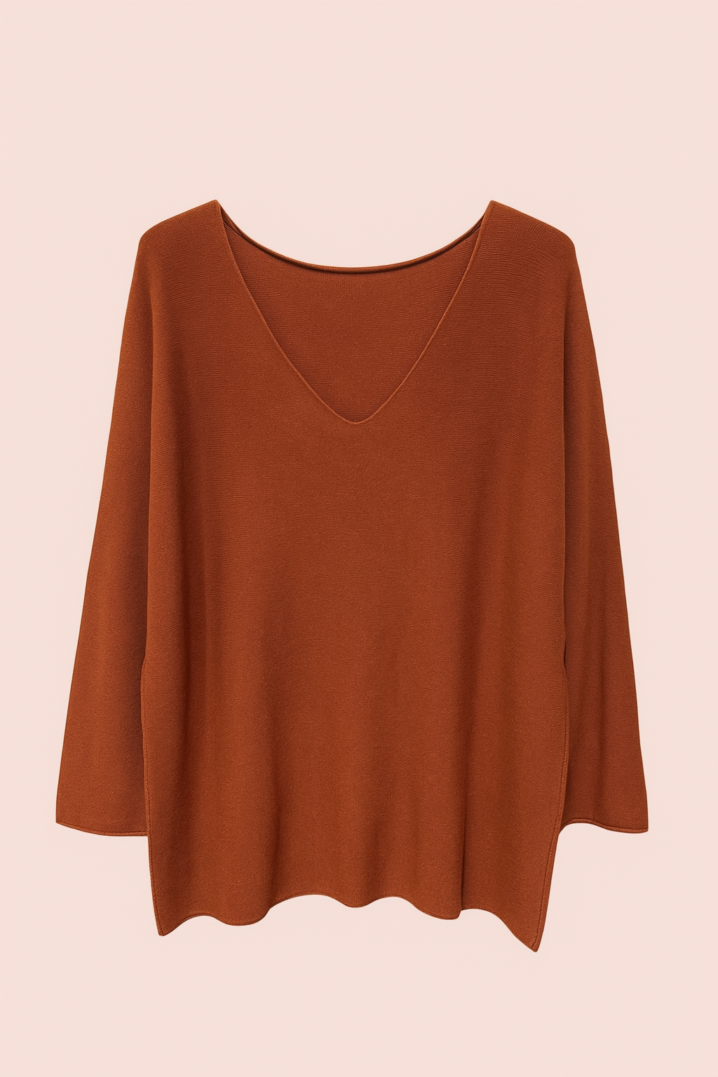 Pull grande taille, la pièce cocooning indispensable de la saison !Confortable, doux et élégant, il sublime toutes les silhouettes du 46 au 52 grâce à sa coupe droite fluide et son col V féminin qui met en valeur le décolleté sans en faire trop.