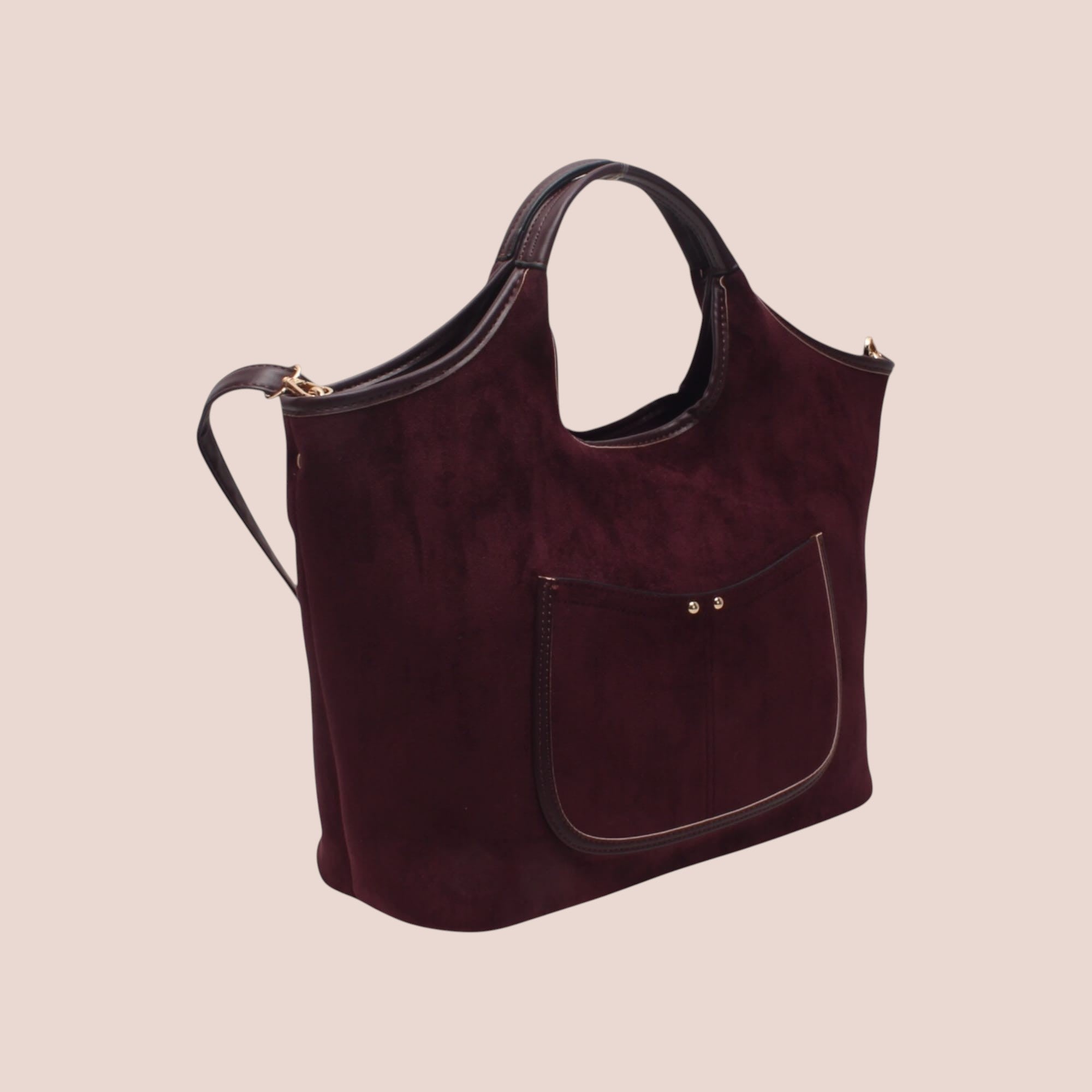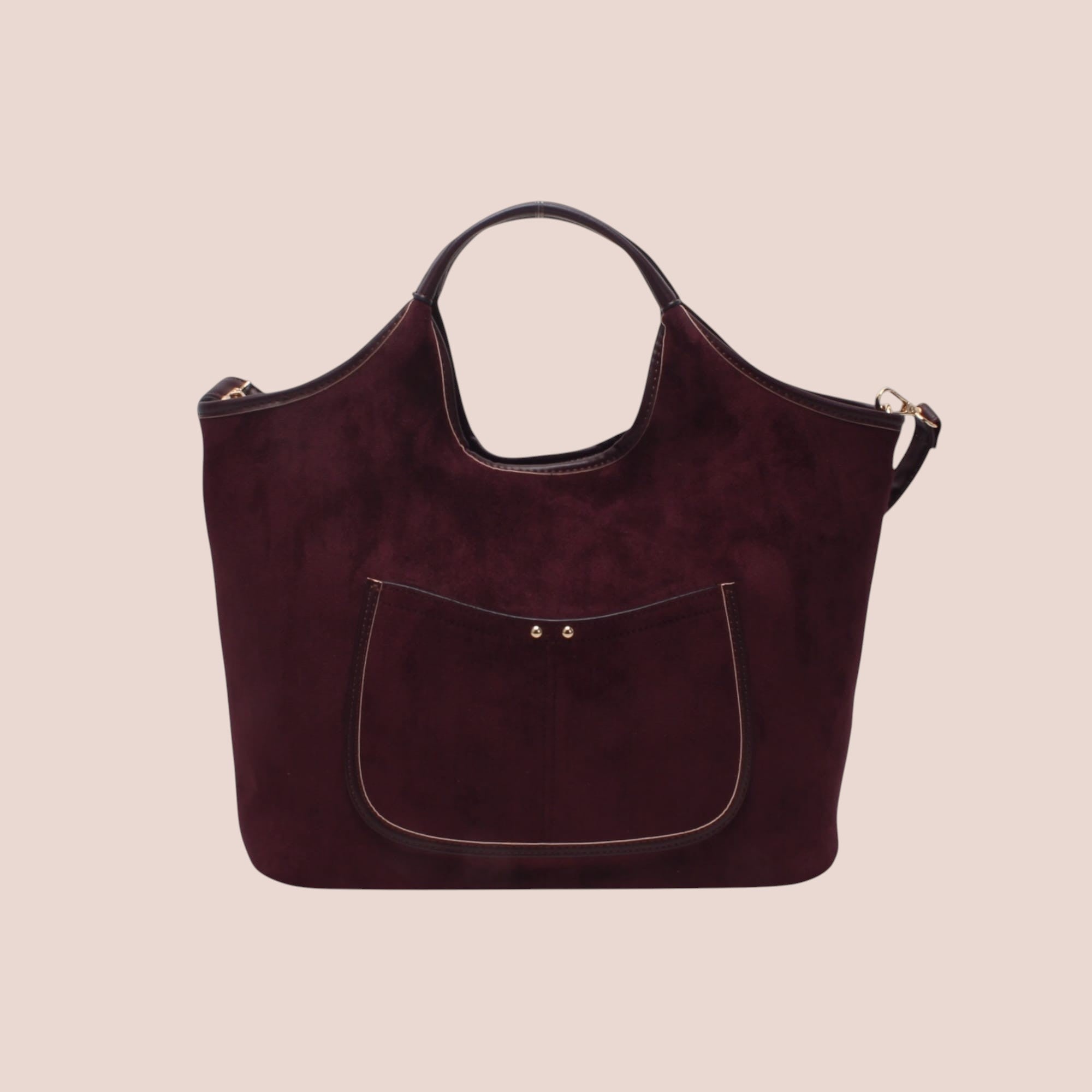 Sac cabas, avec poignet et bandoulière, avec poche avant, suède